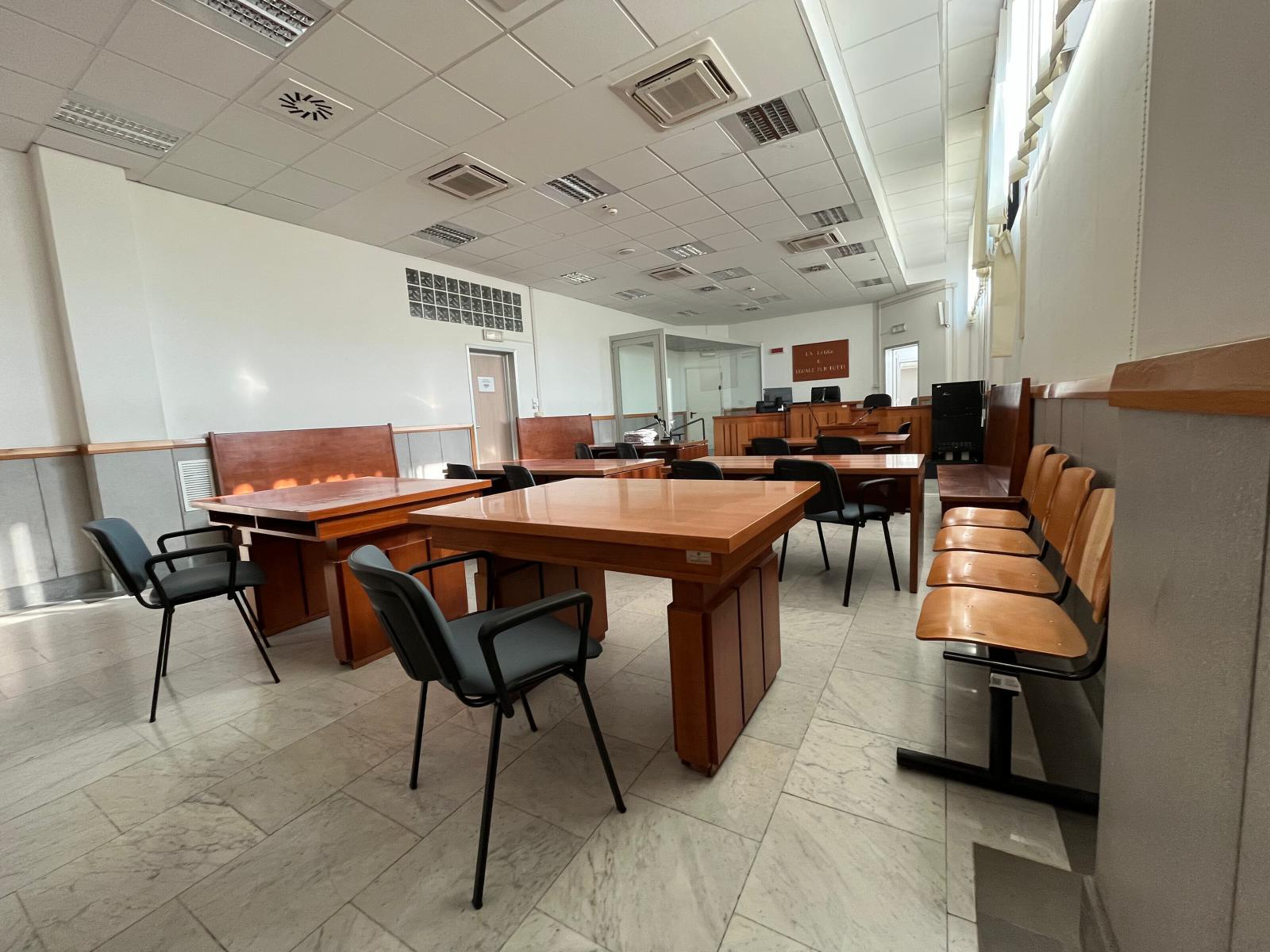 L’aula al piano terra del Tribunale di Torre Annunziata, in Corso Umberto I, 437, è spesso utilizzata per le udienze penali più delicate, come quelle relative a processi con detenuti o a forte impatto mediatico. Non è la sede del GIP, che si trova al quinto piano, ma può ospitare udienze di GUP, dibattimento, o convalide urgenti, soprattutto quando è necessaria una maggiore accessibilità o sicurezza.